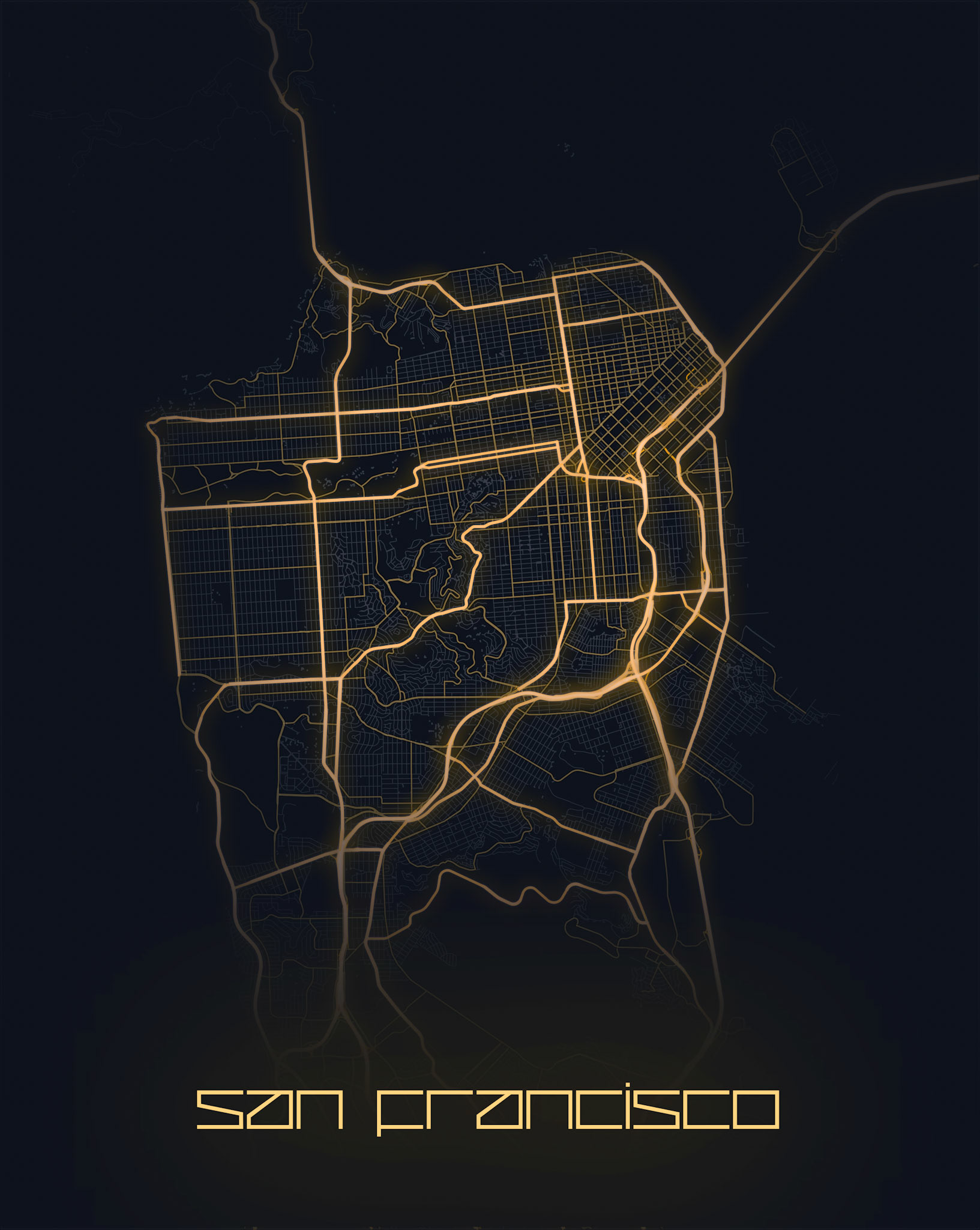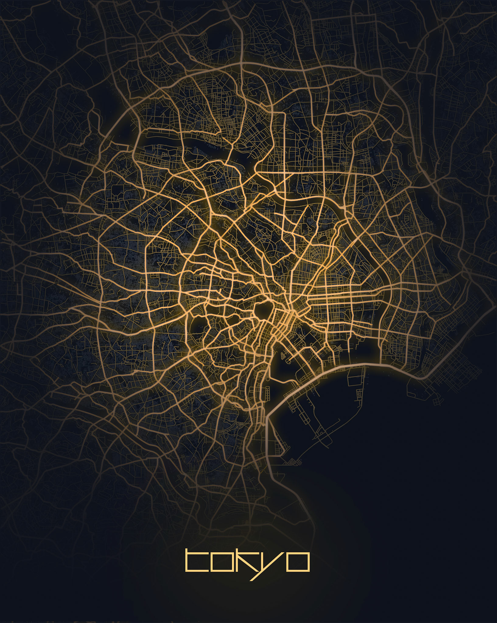 Street maps with a digital style of cities around the world.